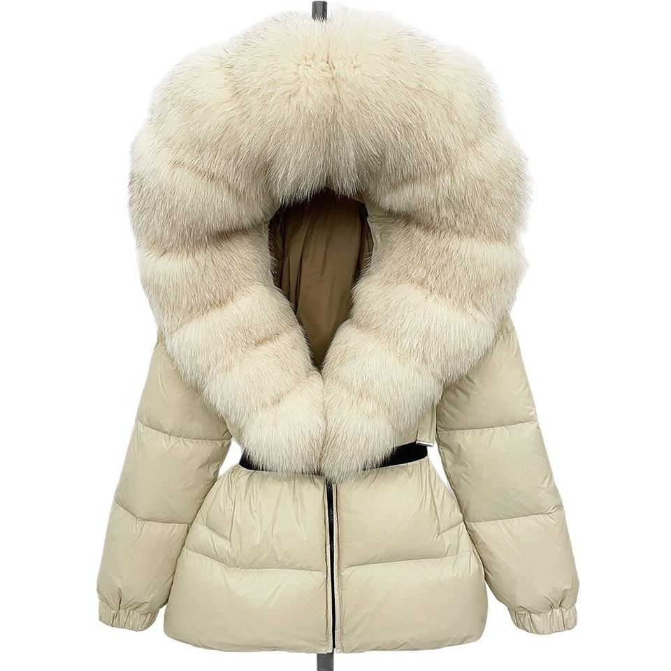 Veste d'hiver mi-longue haut de gamme pour femme Advanced Sense Manteau en fourrure de renard amincissant épais