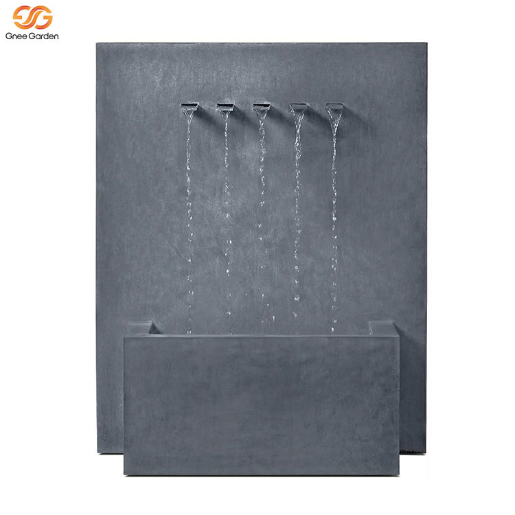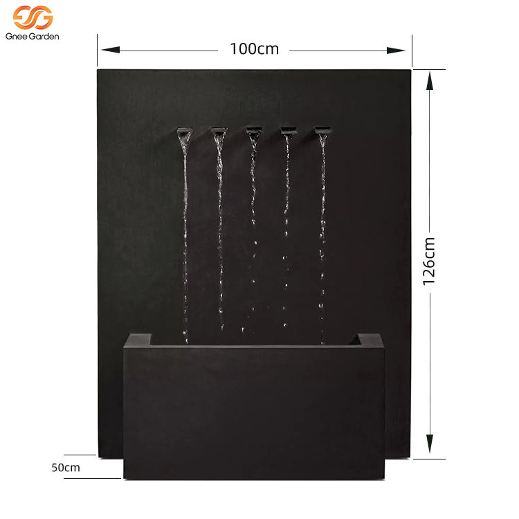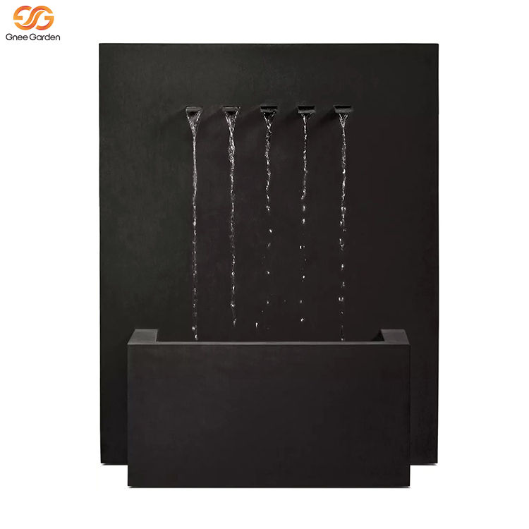 Fontaine murale cascade rectangulaire moderne haut de gamme en métal noir à 5 becs pour jardin extérieur