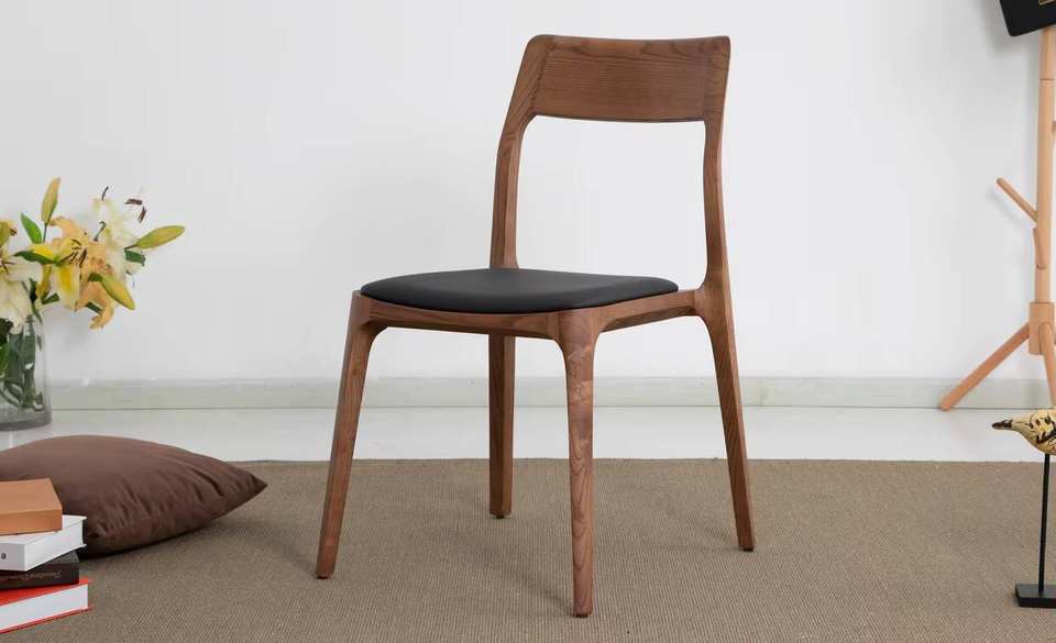 Chaises de salle à manger en bois massif rembourrées sans accoudoirs au design moderne haut de gamme avec coussin en cuir PU, siège réglable, mobilier de maison