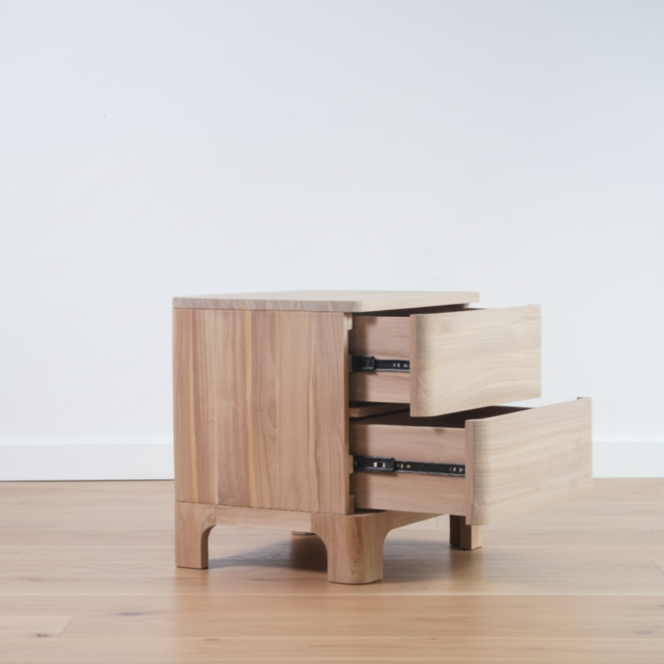 Table de chevet haut de gamme en teck massif, style ferme moderne, avec deux tiroirs et hauteur réglable, pour maison, appartement, hôtel, chambre, salon, entrepôt