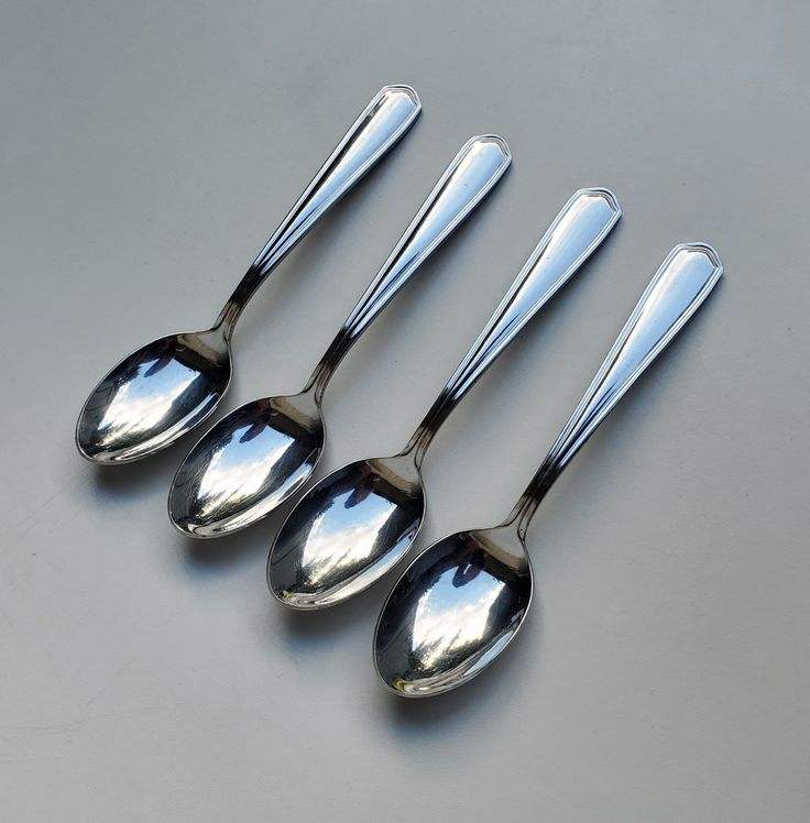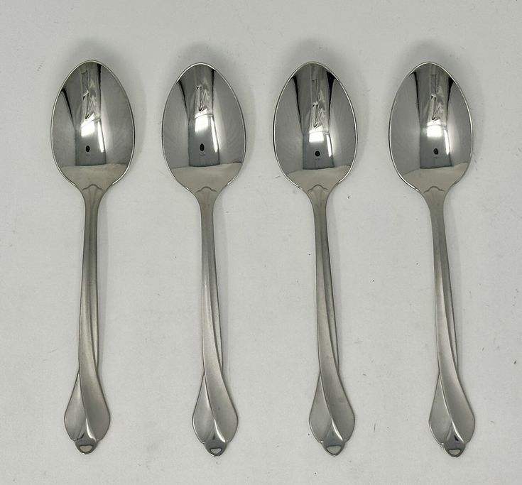 Ensemble de cuillères élégantes et modernes haut de gamme, argent, manche unique, finition design, cuillère de fête, fournisseur indien, 4 pièces en acier inoxydable