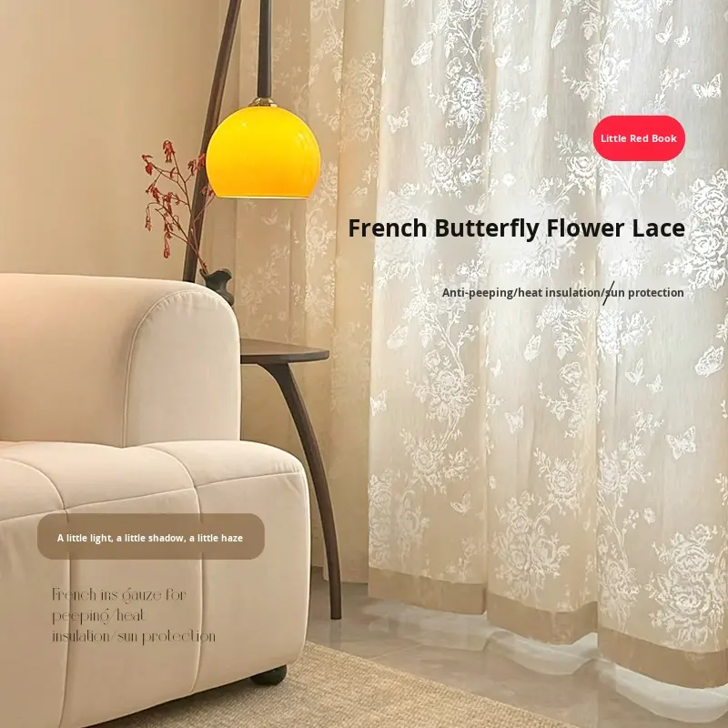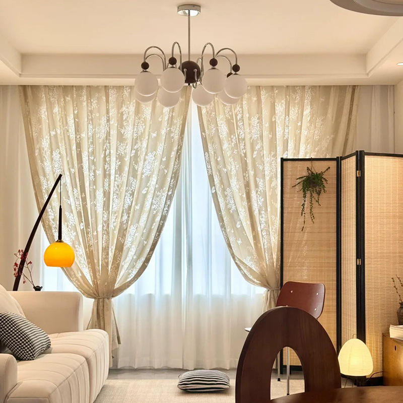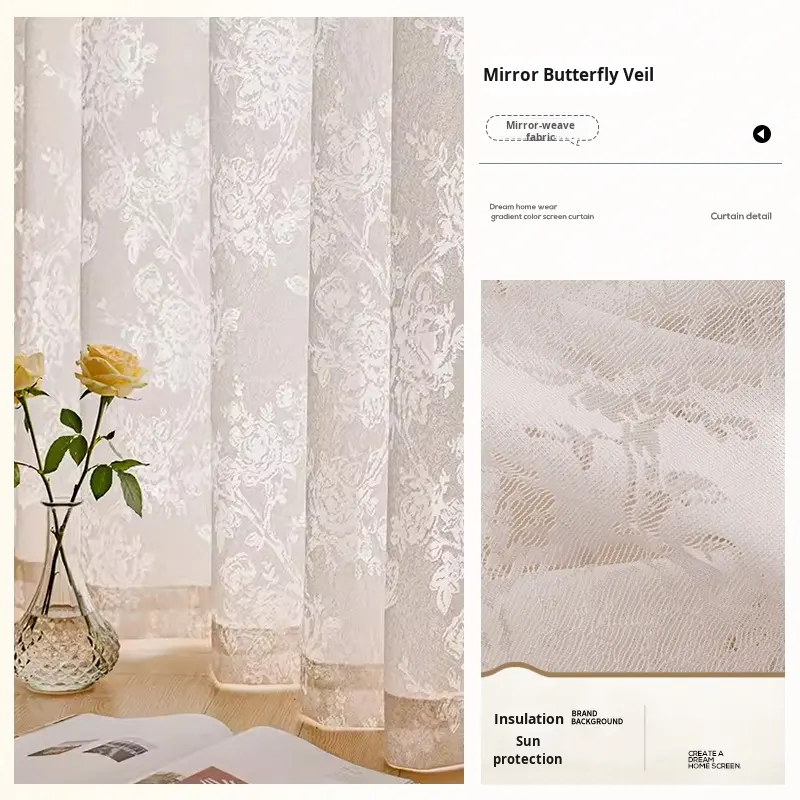 Rideau Ballon Tissé Haut de Gamme Nouveau Style Sur Mesure Occultant Miroir Anti-UV Filtrant la Lumière Motif Floral Polyester Toutes Saisons