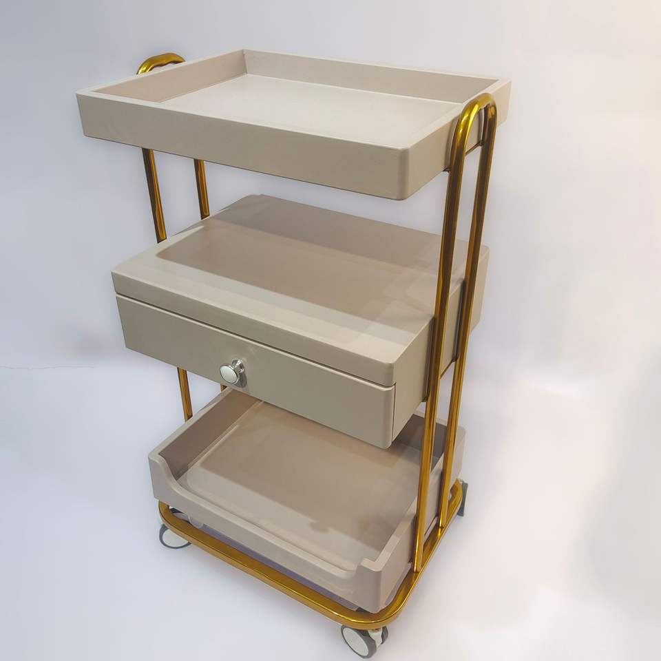 Chariot de Luxe Original Haut de Gamme pour Salon de Beauté, Voiture de Soin de la Peau avec Étagère de Rangement en Bois, Chariot à Outils en Métal et Plastique