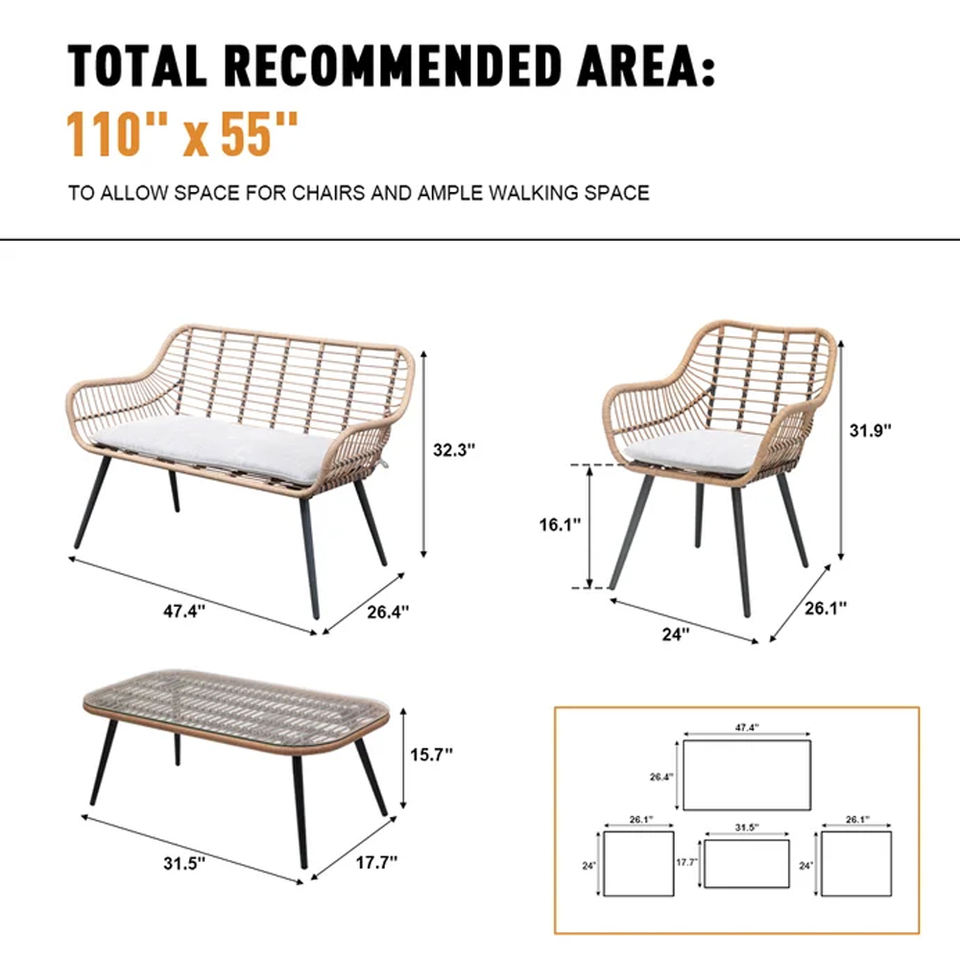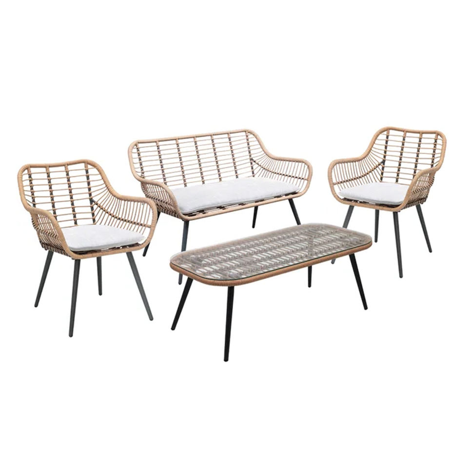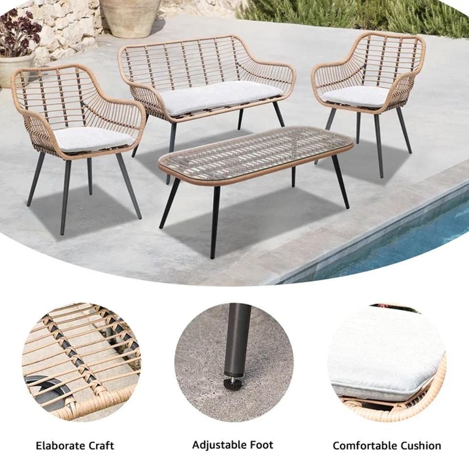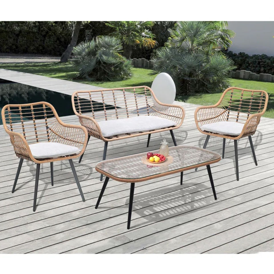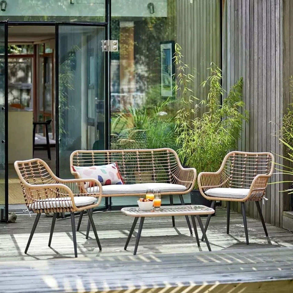 Canapé en rotin et osier 3 places d'extérieur haut de gamme ensemble de meubles de patio canapés de jardin avec coussin confortable