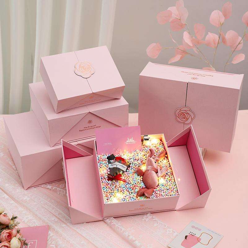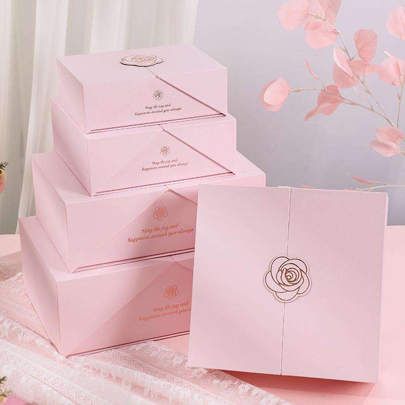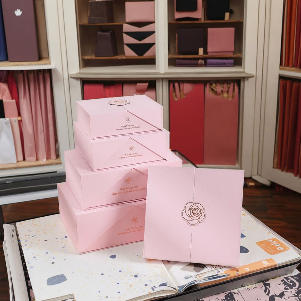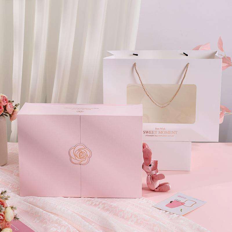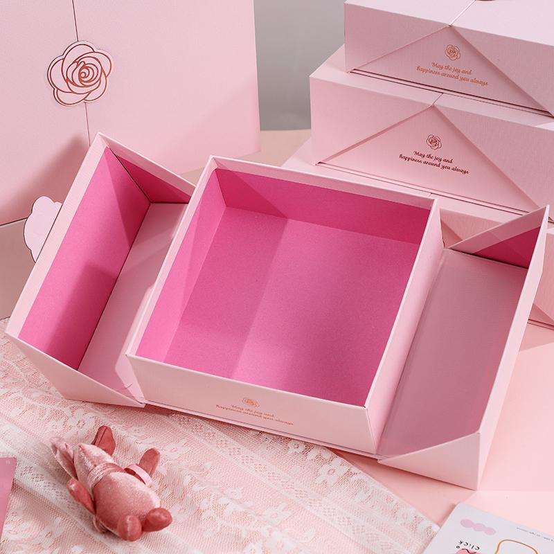 Pochettes magnétiques roses haut de gamme à double ouverture, emballage écologique couché, poignée en matériaux recyclés, pour gaufrage et estampage de chaussettes