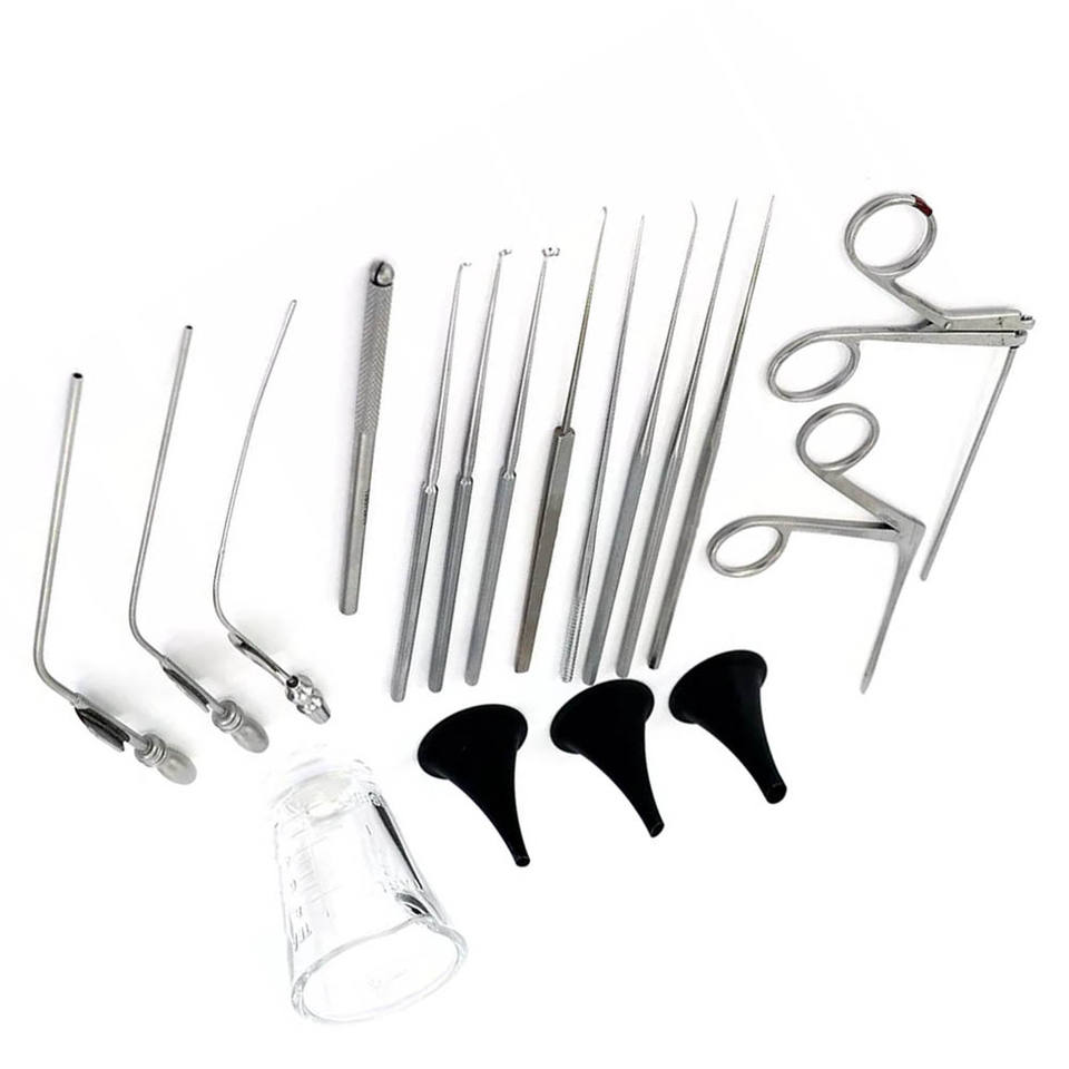 Ensemble de myringotomie générique de qualité haut de gamme ensemble de 18 pièces en acier inoxydable Instruments de chirurgie de l'oreille ORL approuvé CE ISO