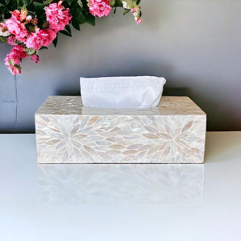 Boîte à mouchoirs en nacre de haute qualité, idéale pour la décoration de table, boîte en MDF avec forme florale pour le rangement du papier