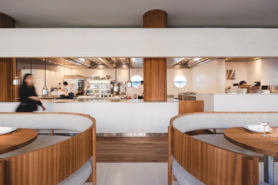 Comptoir de vitrine de restaurant haut de gamme personnalisé pour présentation gastronomique