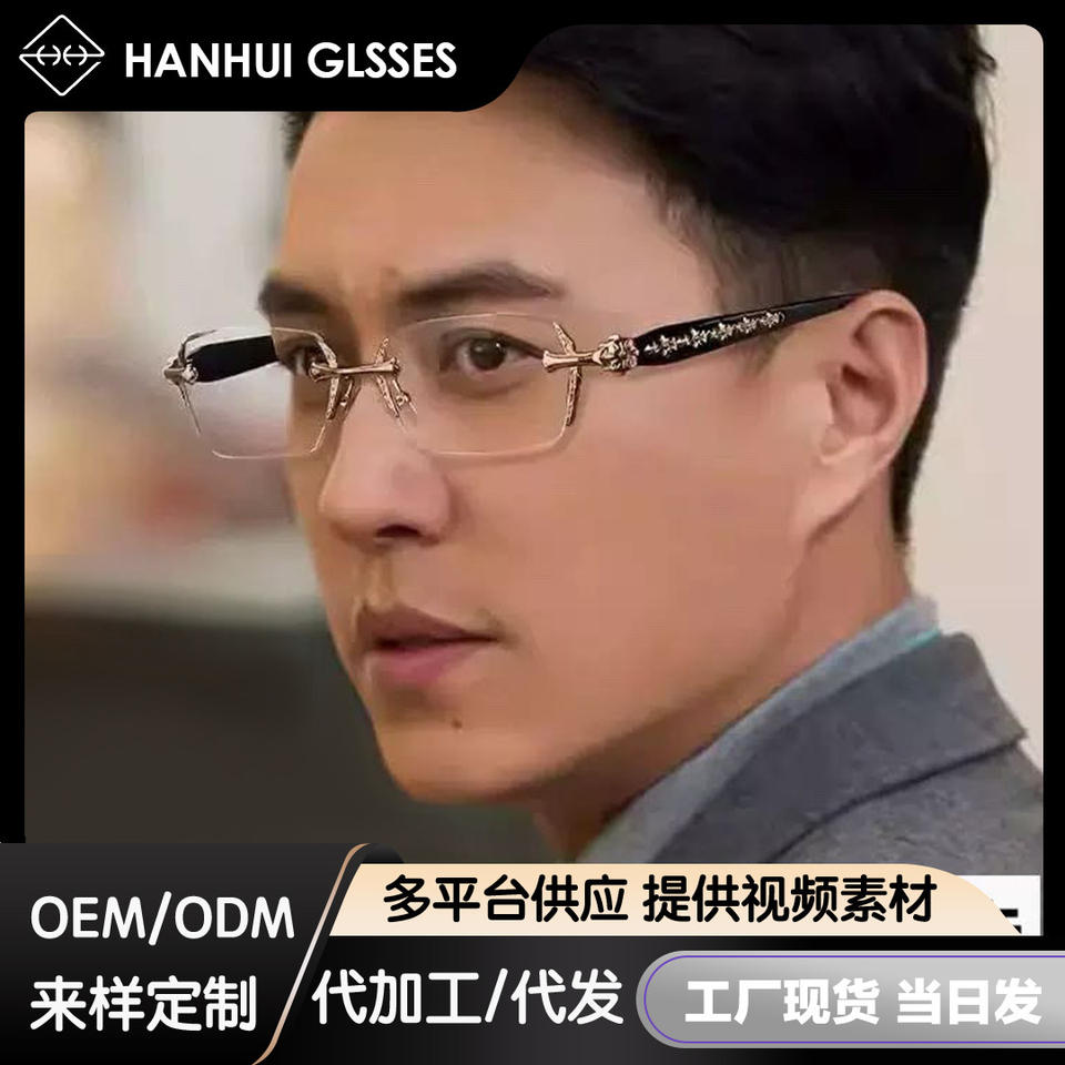 Montures de lunettes sans monture haut de gamme, métalliques, rectangulaires, anti-lumière bleue, unisexe, verres plats en résine, Taizhou 8013
