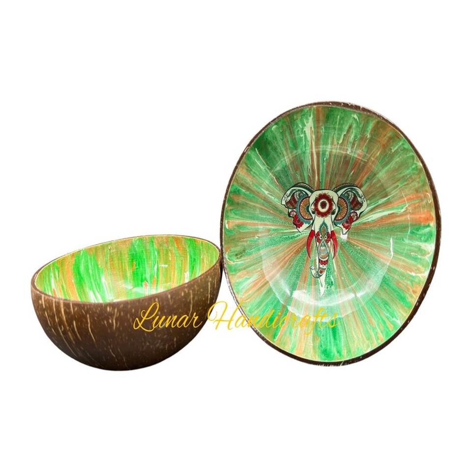 Bol de coquille de noix de coco en laque naturelle ronde haut de gamme motif de couleur fait main pour l'exportation en vrac objets décoratifs