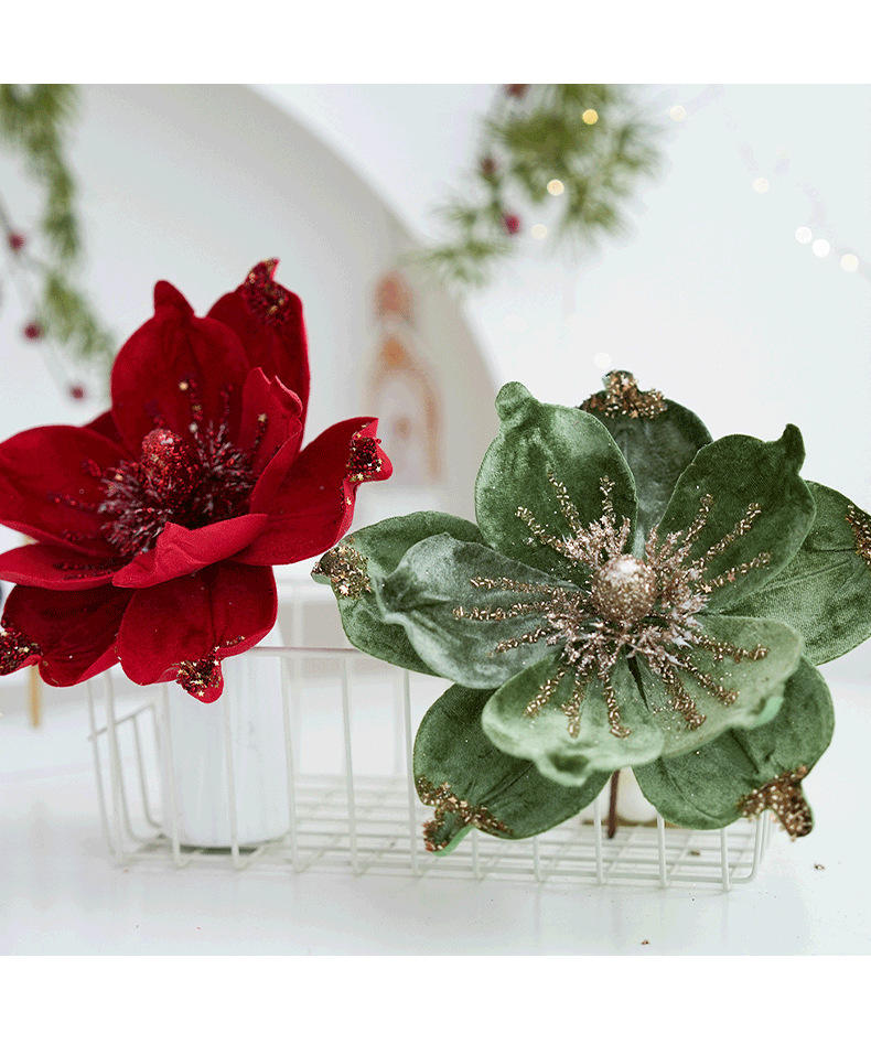 Décoration d'arbre de Noël à fleurs à paillettes haut de gamme Simulation de Magnolia transfrontalière élégante décorations de Noël d'usine de luxe