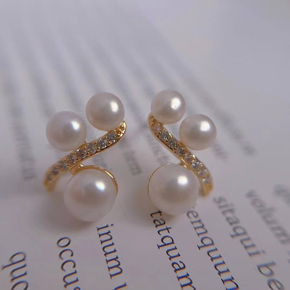 Boucles d'oreilles en perles d'eau douce de forme géométrique simple haut de gamme, élégantes, accessoires de mode en gros