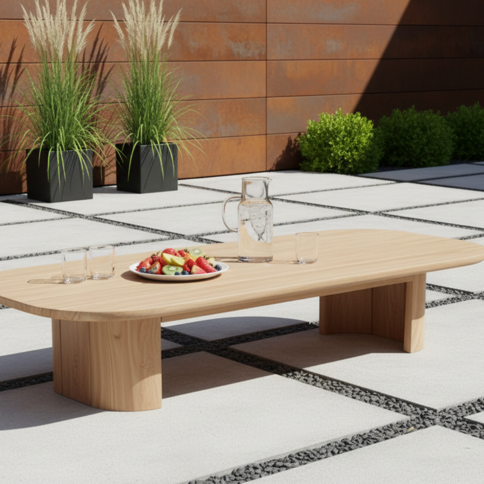 Table basse ovale en teck massif haut de gamme, résistante aux intempéries, pour l'extérieur, idéale pour les appartements, les salons ou les hôtels