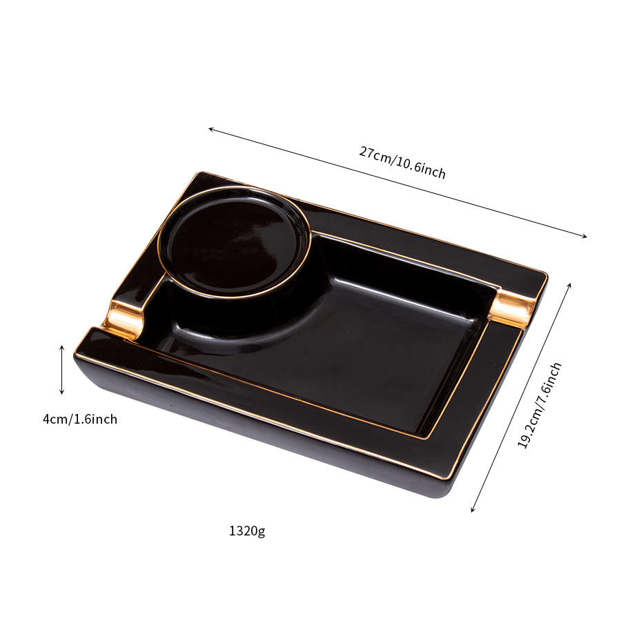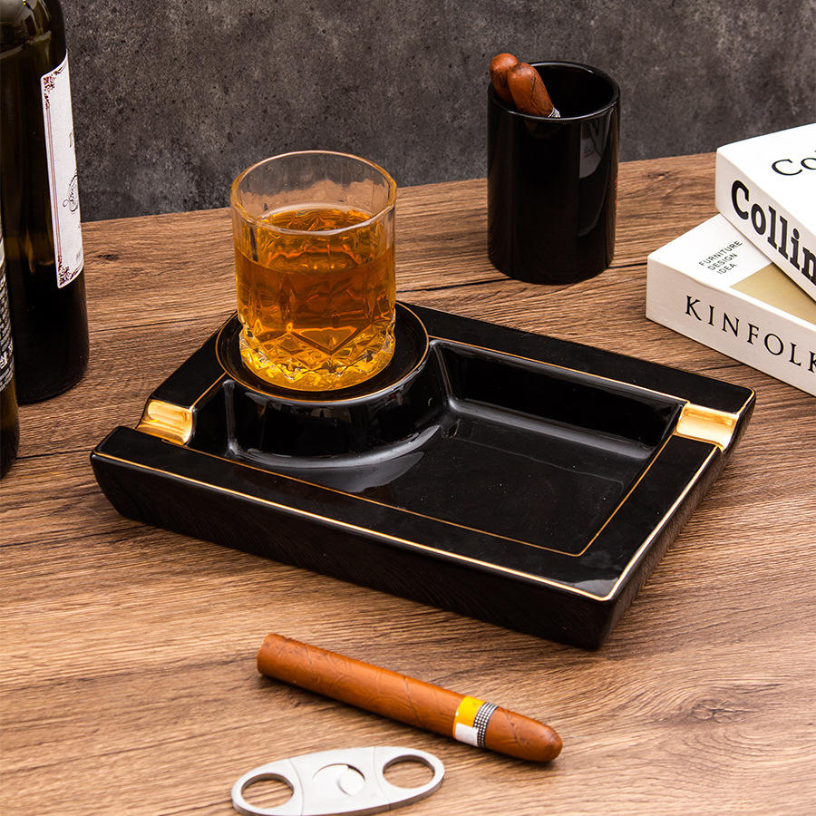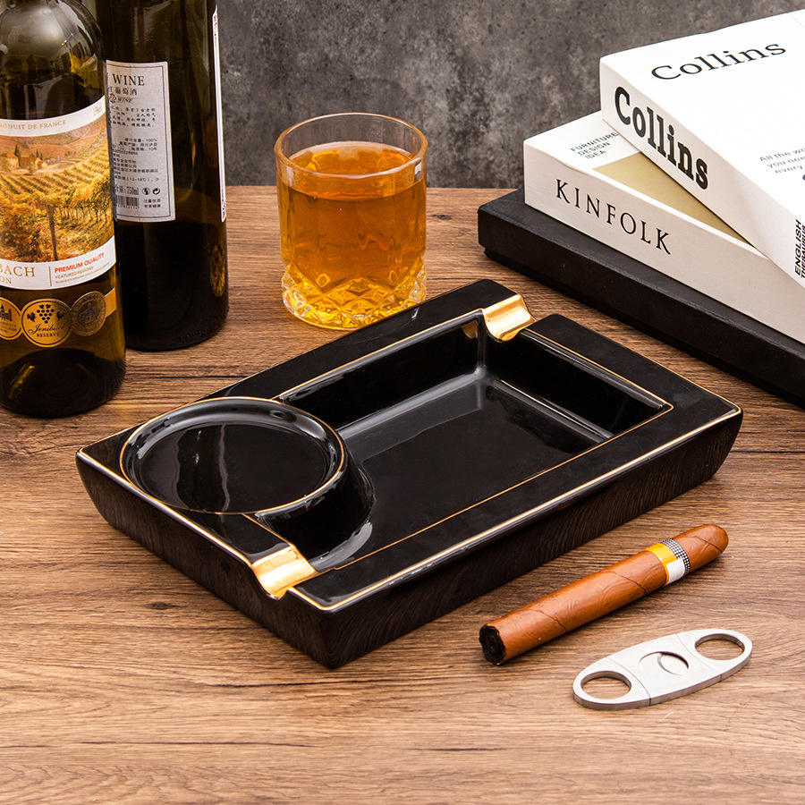 Cendrier carré en céramique haut de gamme noir avec bordure dorée pour fumer des cigares, décoration d'intérieur, cadeau