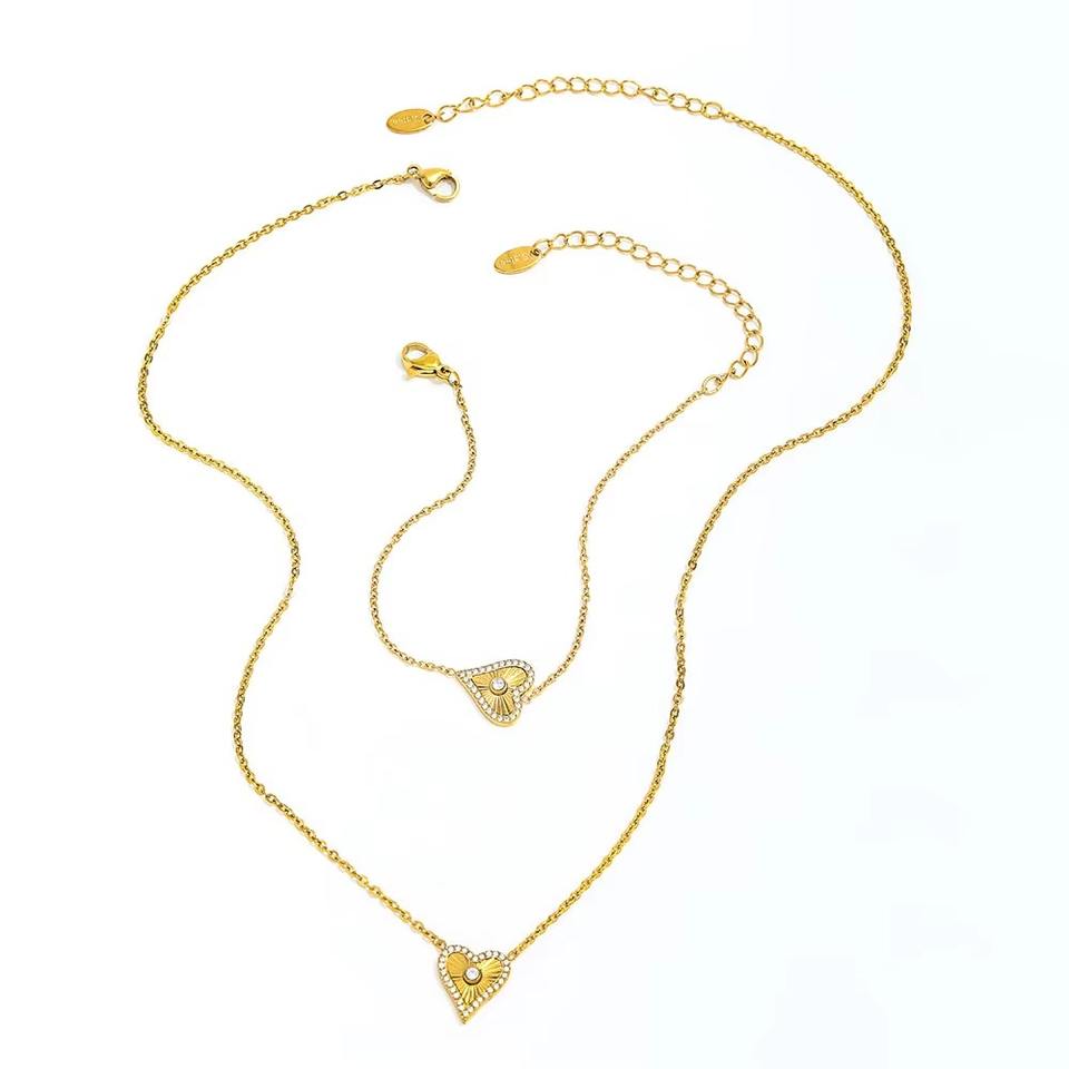 Collier haut de gamme en acier inoxydable à double couche avec cœur en zircon plaqué or 18 ct Ensemble de bracelets de bijoux tendance