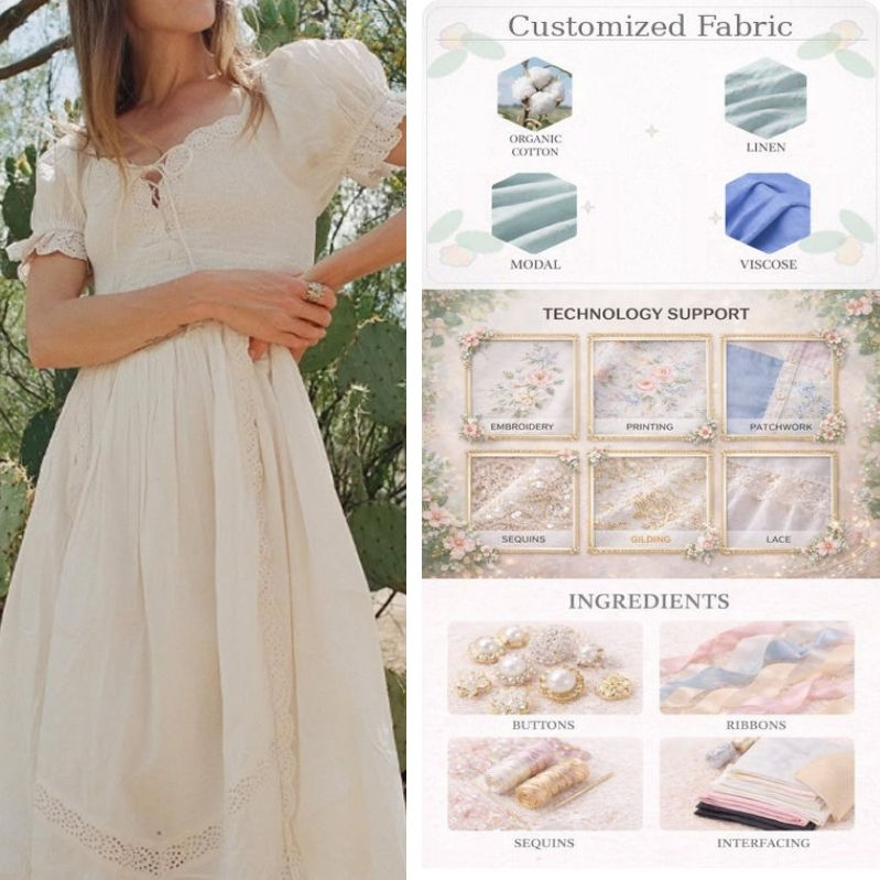 Robe d'été décontractée haut de gamme et tendance en mélange de coton jacquard, avec manches bouffantes, pour le quotidien, lot de 50 pièces