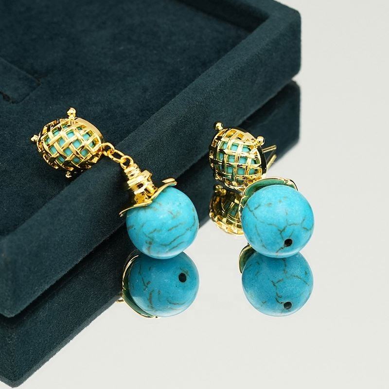 Boucles d'oreilles longues géométriques tendance de haute qualité en turquoise, coupe princesse, plaquées or cuivre, style ethnique, cadeau pour femme