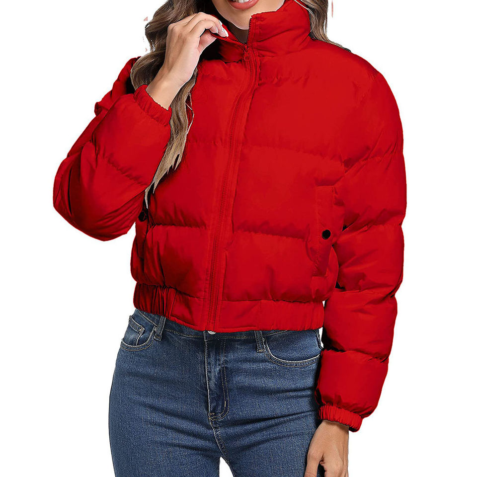 Veste d'hiver tendance haut de gamme pour femmes, polyvalente et chaude, avec un tissu en toile de couleur unie brillante, style doudoune, veste d'extérieur 2026
