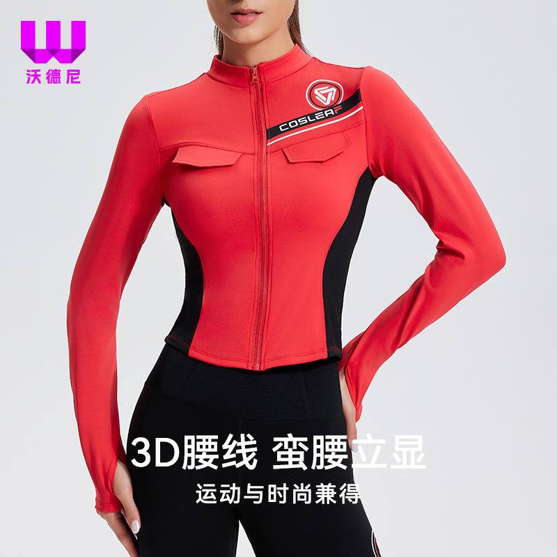 High-End Women's Autumn Fitness Clothes Slim Waist Slimming Yoga Wear Zipper Long Sleeves Color Matching Training Running Sports