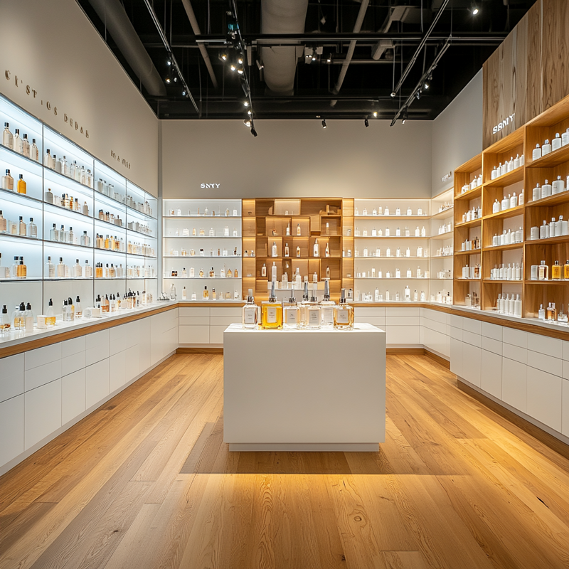Décoration de magasin de bois haut de gamme Conception de magasin de parfums Table d'affichage Magasin de vente au détail de parfums Design d'intérieur