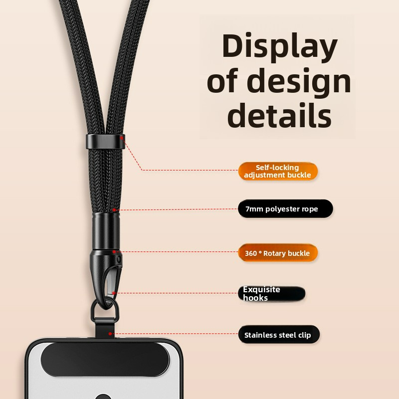High End Wrist Strap Anti Lost Phone Carrying Lanyard Durable Nylon Bullet Shape Rotary Buckle with Metal Phone Clip