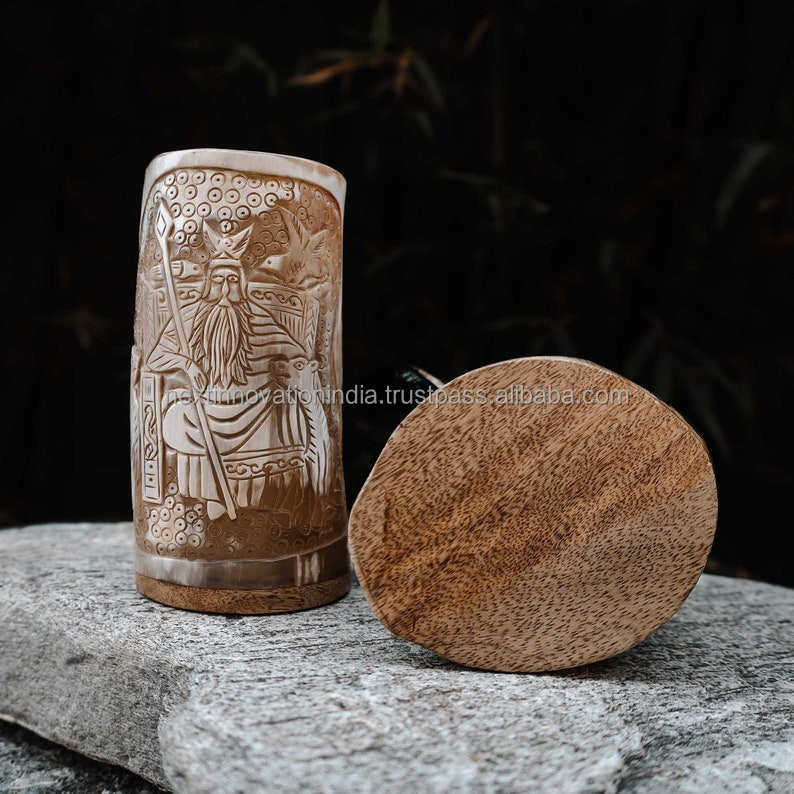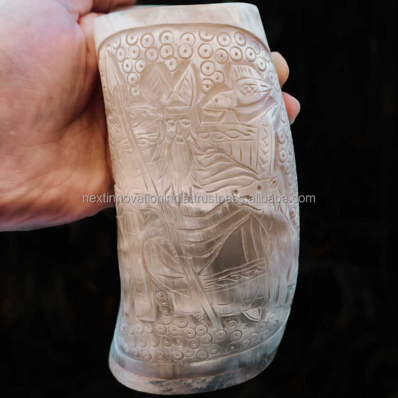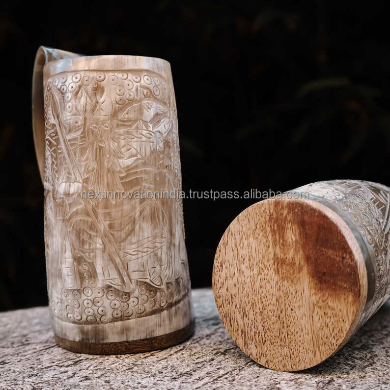 Mug à vin élégant haut de gamme en corne de buffle, style viking, finition polie, taille personnalisable, idéal pour cadeau de mariage et usage domestique