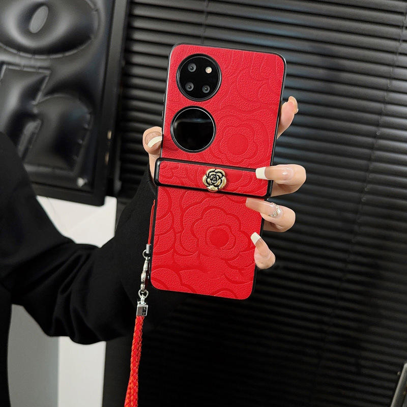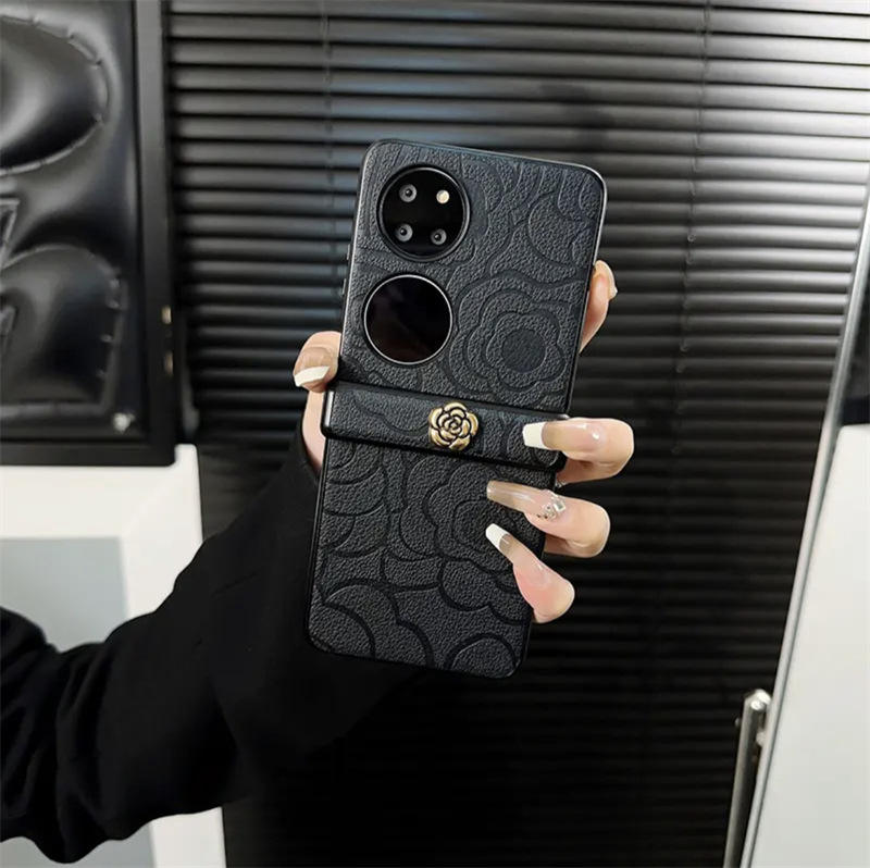 Haut de gamme pour Huawei P50 Pocket pour Samsung Zfli3 Flip Cover Set Camellia Mobile Phone Case Flower Folding Design TPU PU