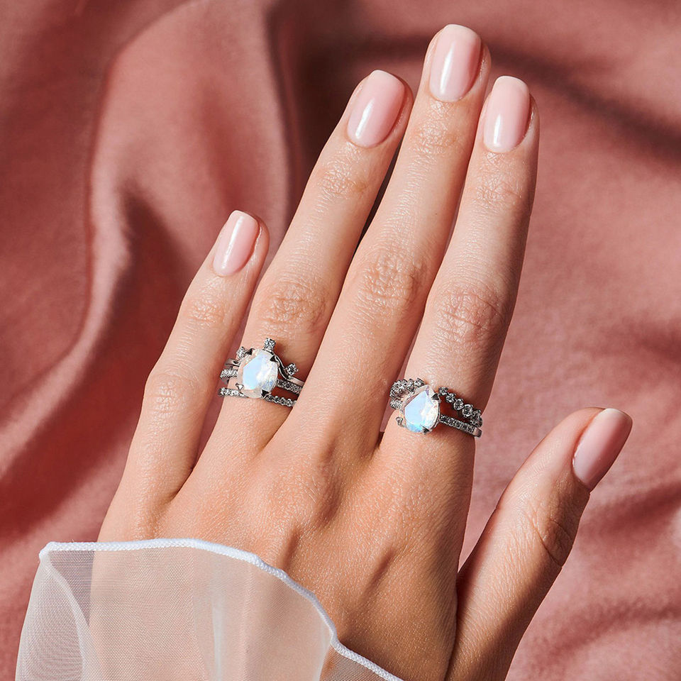 925 Silver Wedding Ring:925 silver Moonstone Ring Set