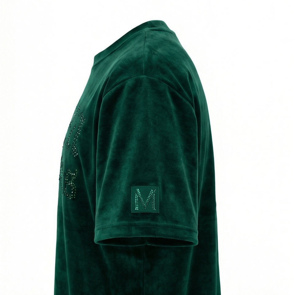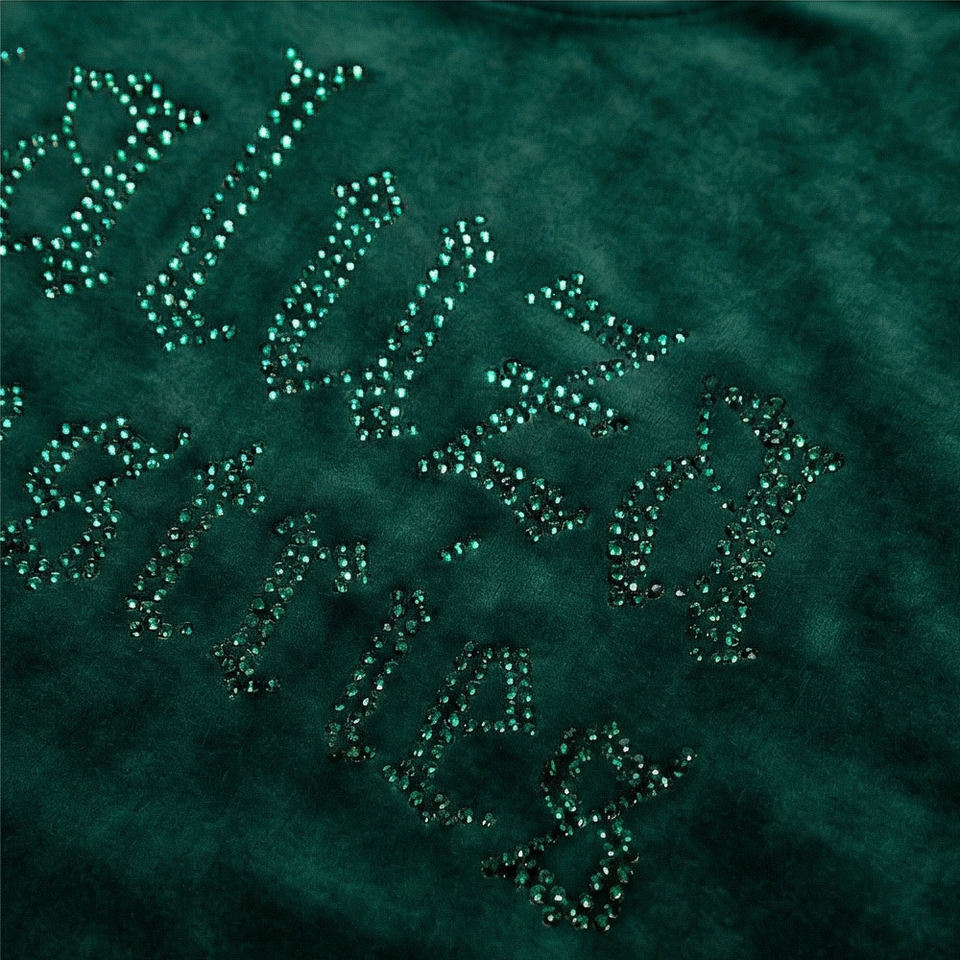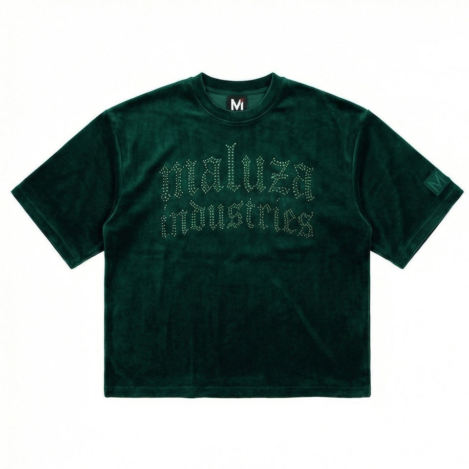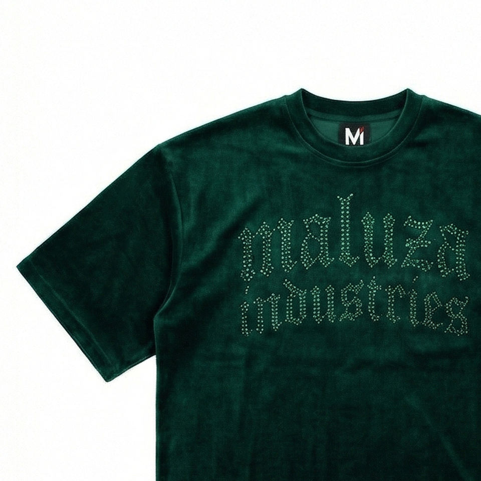 T-shirt streetwear en velours haute couture avec logo gothique en strass, style décontracté urbain hip-hop MALUZA INDUSTRIES