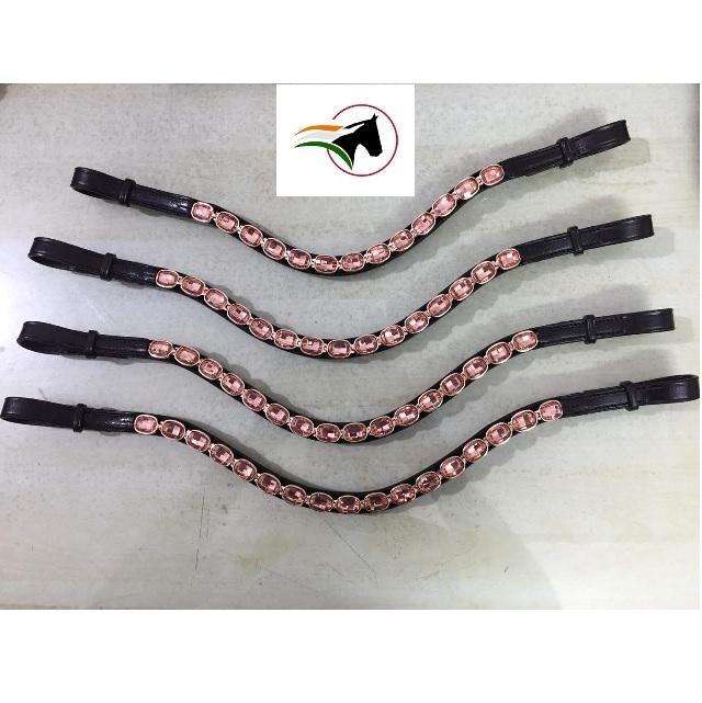 Accessoire équestre de bande de front de cristal ovale d'or Rose de qualité à la mode pour l'équitation de course ouverte bande collante cheval en cuir