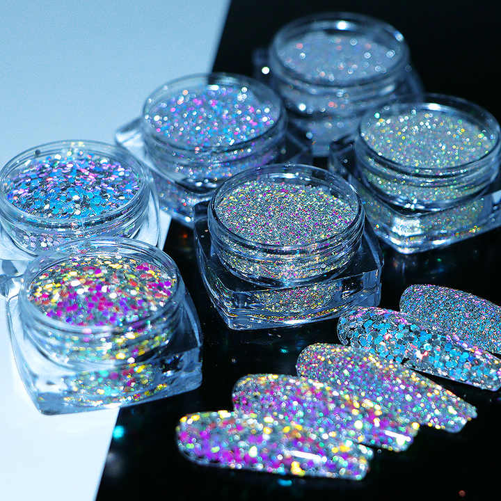 Haute Flash Réfléchissant Paillettes Holographique Poudre De Paillettes À La Mode Déco pour Cheveux Ongles Artisanat Emballage De Marque Privée Disponible