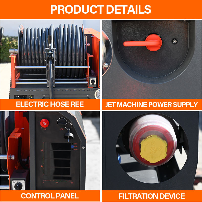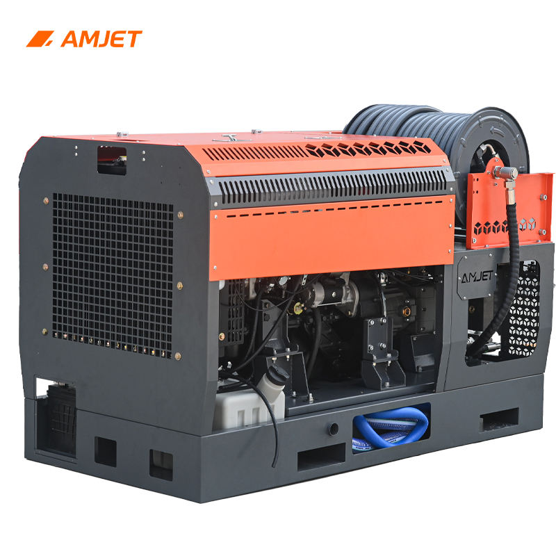 Machine de débouchage de tuyaux de drainage AMJET à haut débit 4350psi 15gpm 300bar, tuyau de 75m pour le nettoyage des égouts et l'entretien des eaux usées