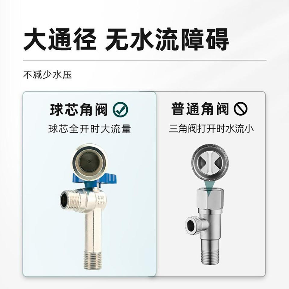 Robinet à bille tout en cuivre à haut débit 4/6 points Noyau de bille en cuivre Robinet à angle droit pour tuyaux de chauffe-eau eau chaude et froide