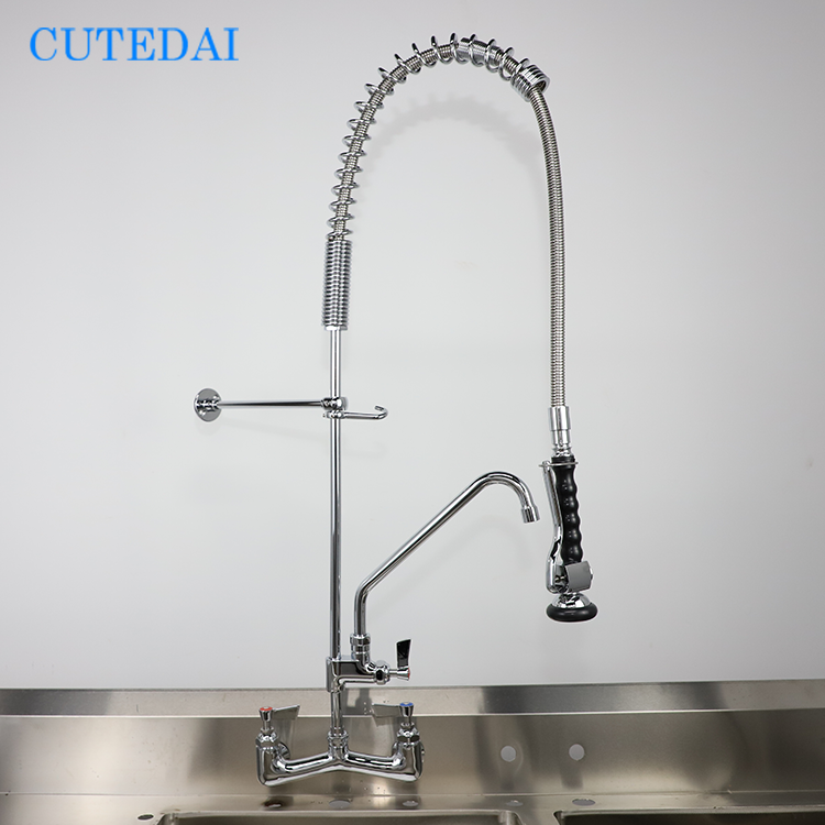 Robinet de cuisine commercial en laiton chromé à débit élevé, mural, avec douchette de pré-évier, pour hôtels et restaurants industriels, hauteur 47 pouces, entre-axes 7-8 pouces