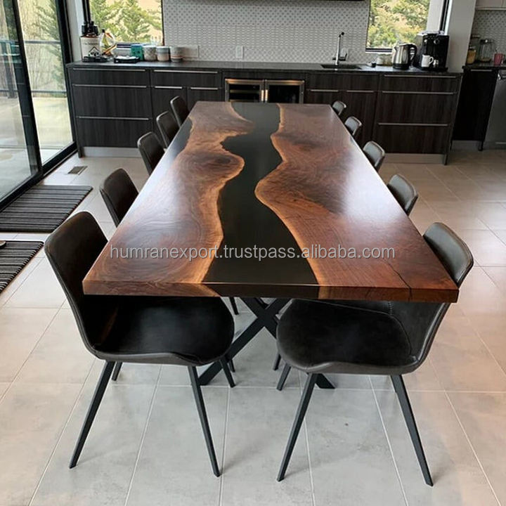 Humran Export Inde Moderne Italien Léger De Luxe 10 Places Table À Manger Pliable Haute Brillant Résine Époxy Conception En Bois