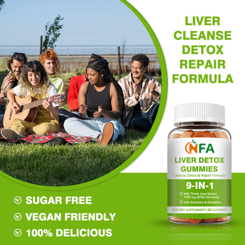 Supplément à base de plantes 9 en 1 de haute qualité stimule la santé digestive immunitaire Gommes de désintoxication du foie avec artichaut et pissenlit