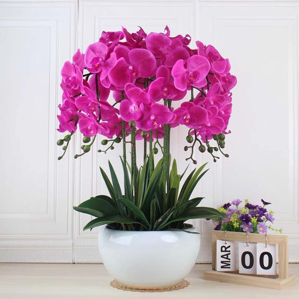 Orchidée artificielle haut de gamme à 8 têtes, toucher réel, grande, blanche, en latex, pour décoration de mariage de luxe