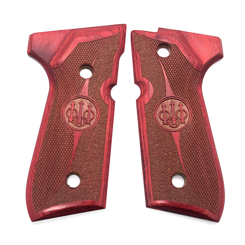 Poignée de tir CNC de haute qualité partie rouge Anbi-safty coupe damier laminé diamant bois tactique 92F poignées