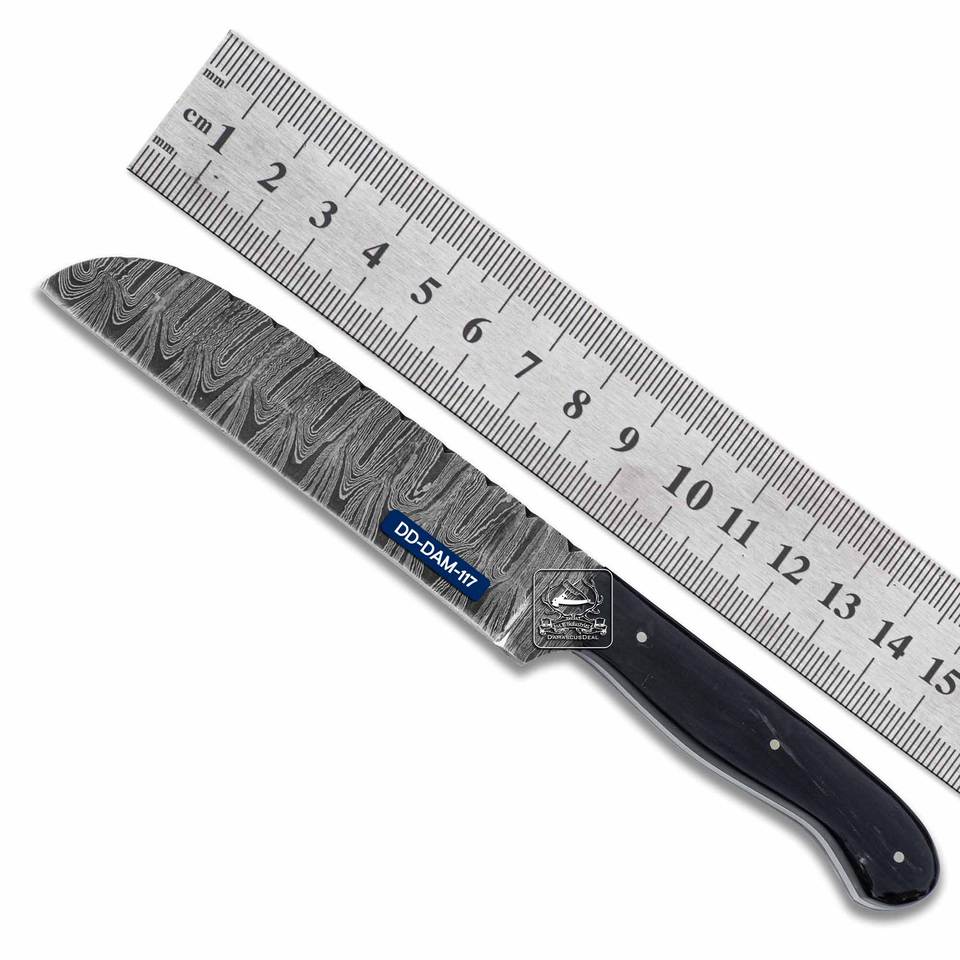 Couteau de chasse personnalisable de haute qualité fait à la main en acier damas DD-DAM-113 manche en corne de buffle gaine en cuir OEM gravé au Laser