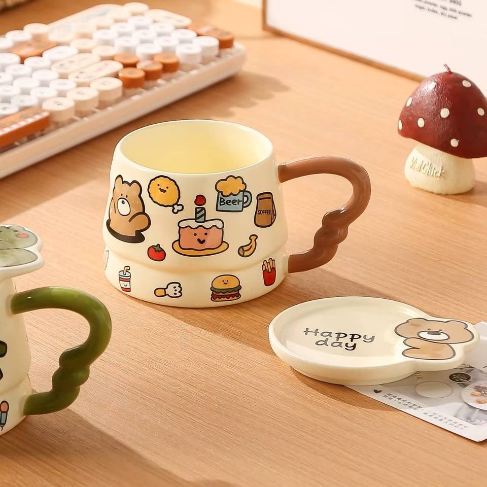 Mug en céramique de haute qualité avec couvercle en forme d'animal de dessin animé | Lave-vaisselle sans danger pour un usage quotidien et cadeau idéal