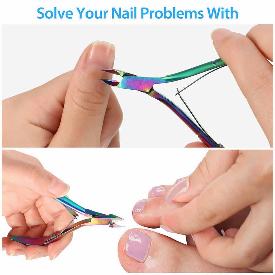 Pince à cuticules de haute qualité, couleur arc-en-ciel manucure pince à cuticules 4.0 pouces en acier inoxydable pince à cuticules fantaisie