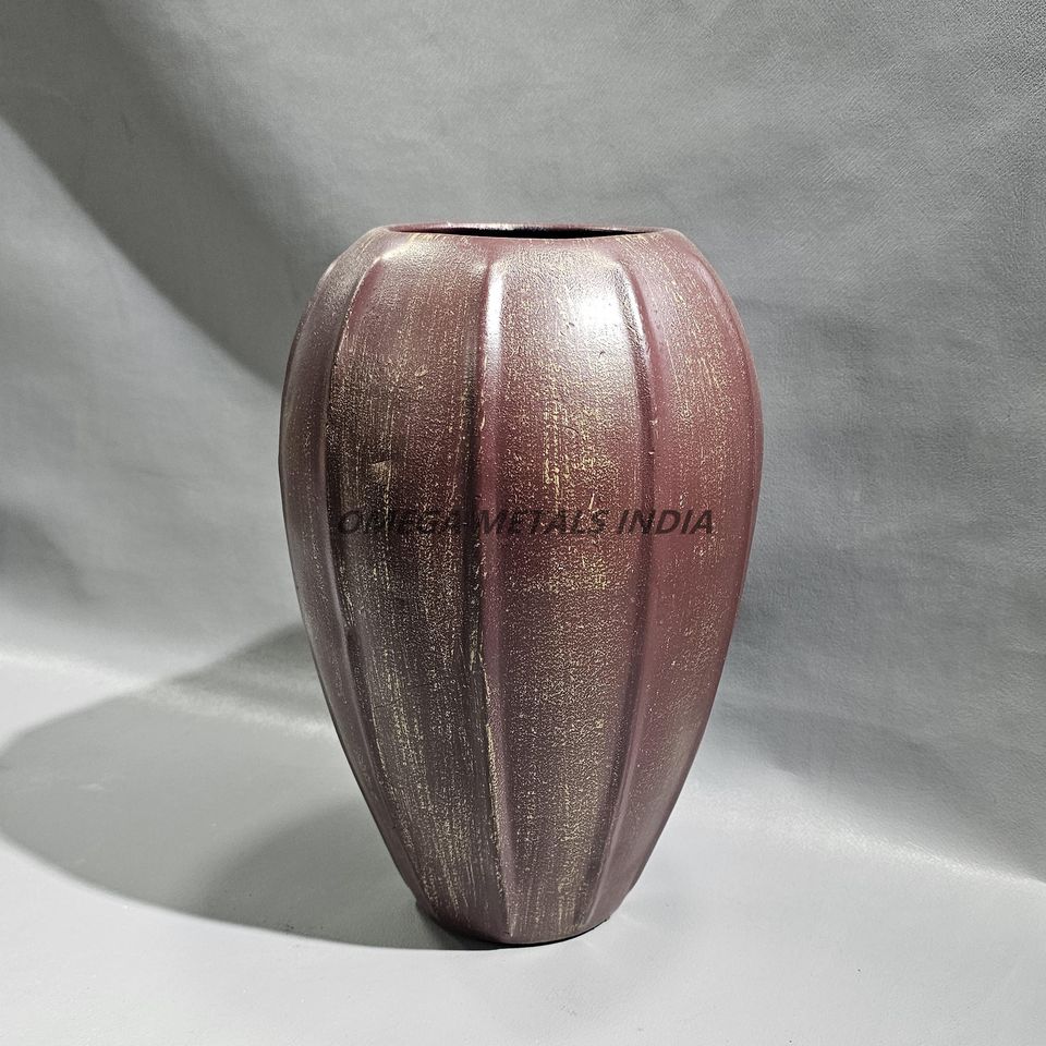 Vase en métal rainuré marron foncé de haute qualité Forme incurvée élégante avec finition texturée Parfait pour la décoration intérieure et les affichages floraux