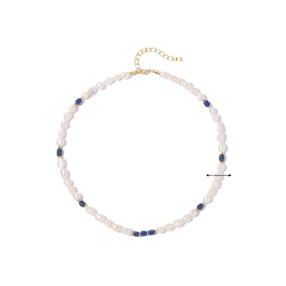 Collier perlé polyvalent de haute qualité en perles de culture d'eau douce naturelles et pierre lapis-lazuli bleue, chaîne de clavicule pour pulls, haute couture
