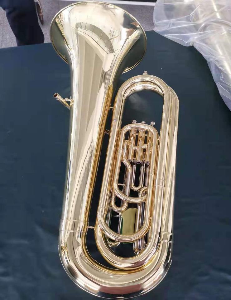 Tuba à Pistons en Laiton Laqué Or de Haute Qualité, Clé Bb, 3/4 Pistons, avec 3 Pistons en Cupronickel (JTU-510)