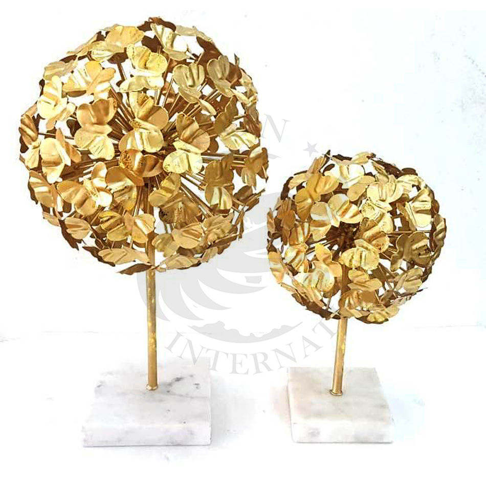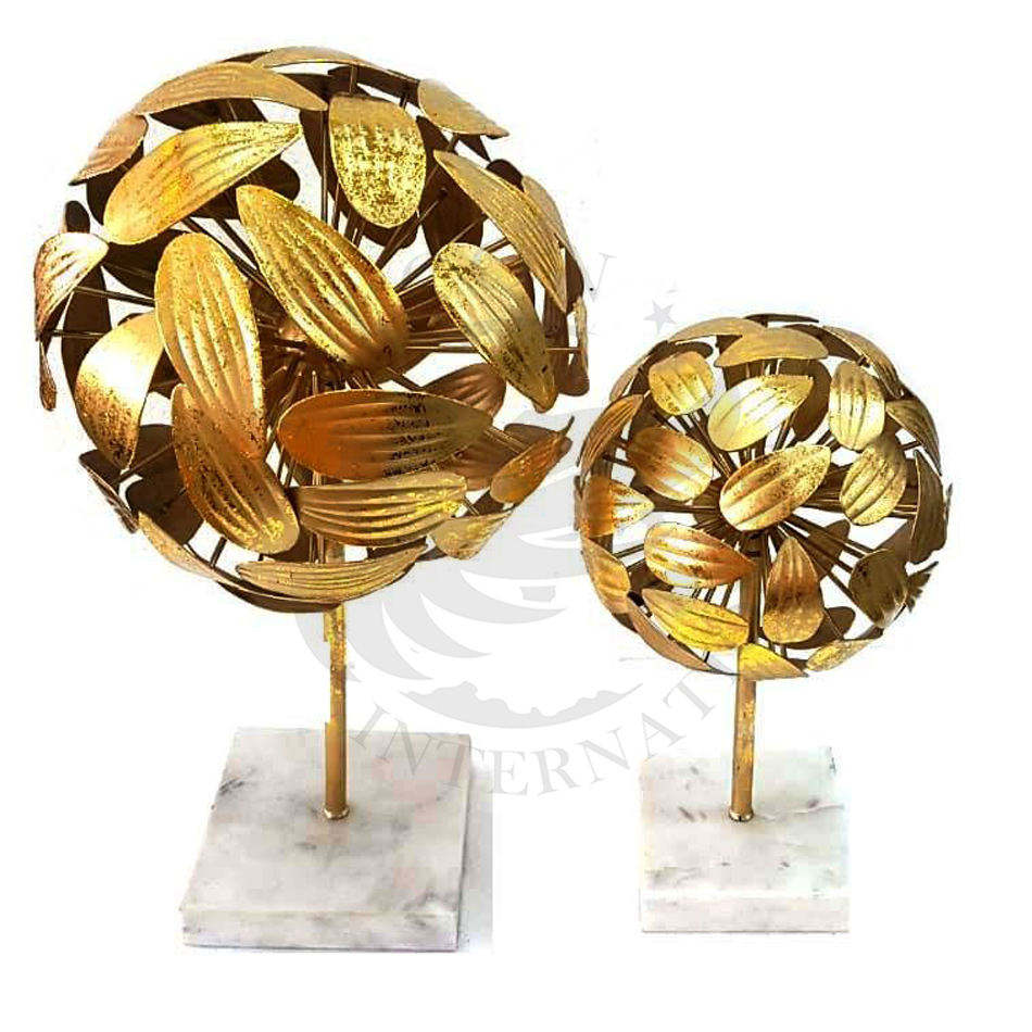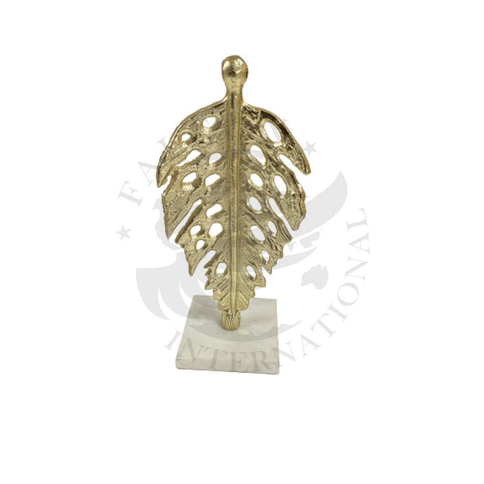 Haute qualité plaqué or fantaisie feuille moderne métal artisanat luxueux qualité en aluminium dessus de table Sculpture base en marbre blanc