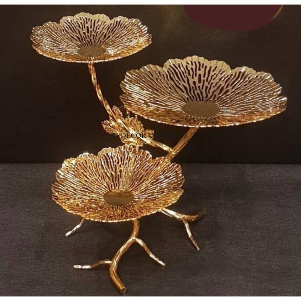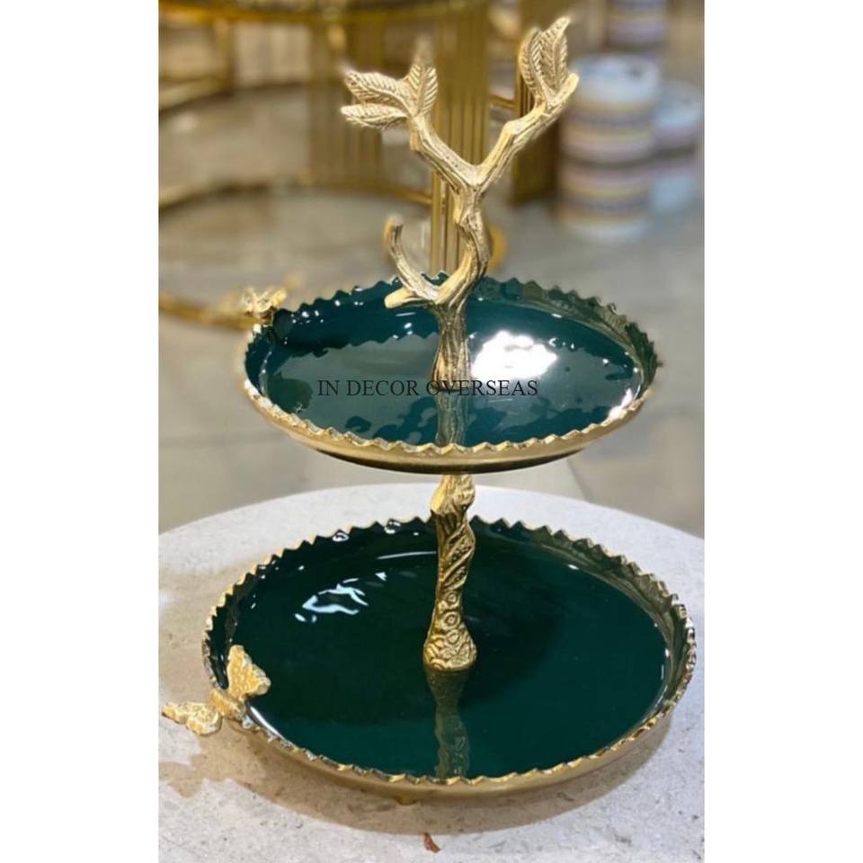 Designer unique plaqué or de haute qualité et finition en argent martelé brillant poli support de gâteau à l'aspect attrayant à 2 niveaux