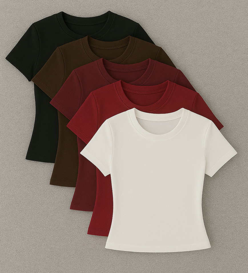 T-shirt Décontracté d'Été à Col Rond pour Femme en Coton Jersey, Manches Courtes, Souple, Très Extensible et de Haute Qualité