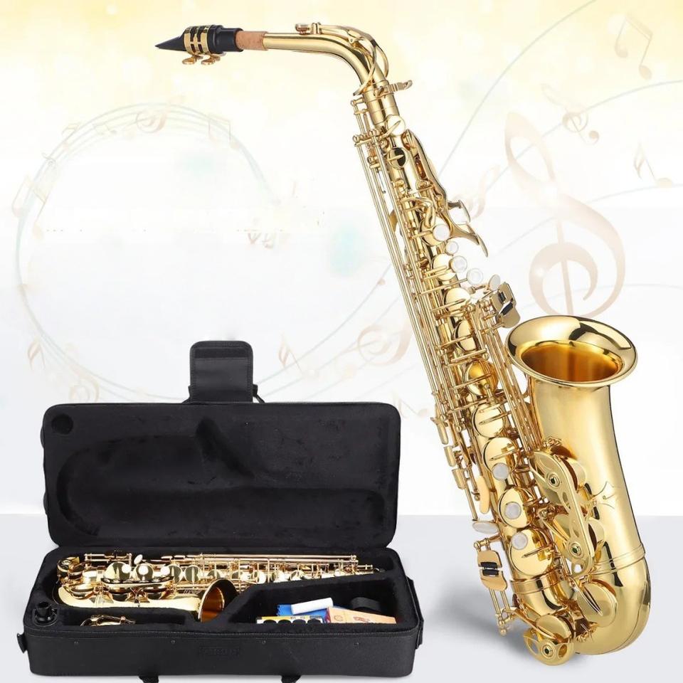 Saxophone alto Eb professionnel de haute qualité avec finition laquée or, instrument en laiton - Très bon marché, neuf