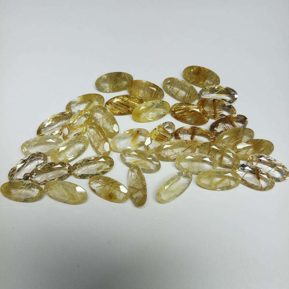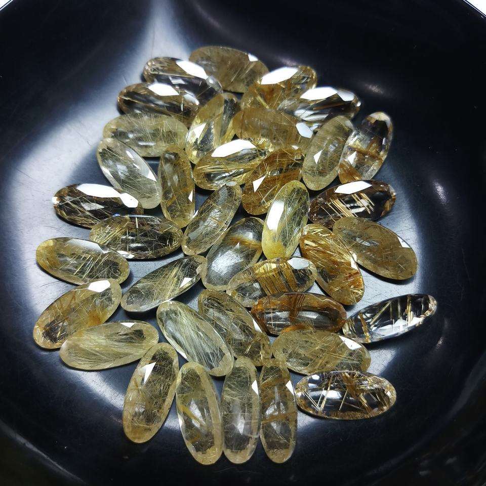 M.Y.GEMS Pierre précieuse naturelle de haute qualité en quartz rutilé doré, taille ovale 8x16mm, certifiée par un tiers, en vrac pour la fabrication de bijoux