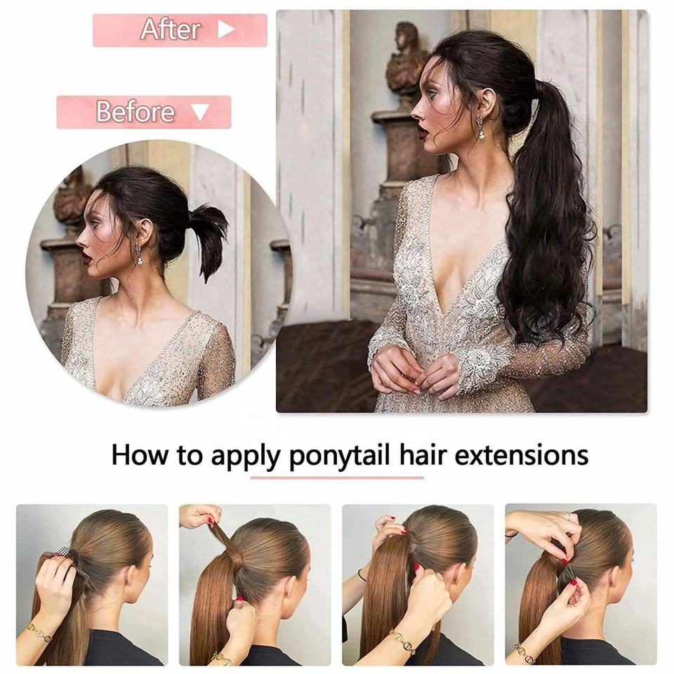 Extension de cheveux humains à clipser, queue de cheval enveloppante